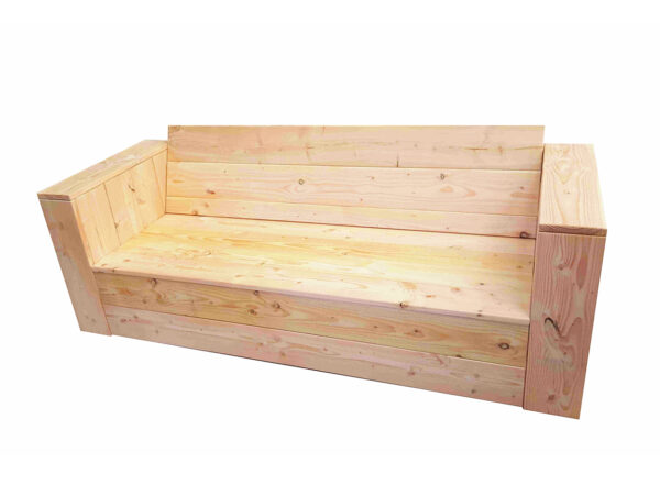 U kunt de bank Bas in 2 verschillende houtsoorten ontvangen Douglas en Vuren. Bij beide houtsoorten zijn er geschaafde planken met